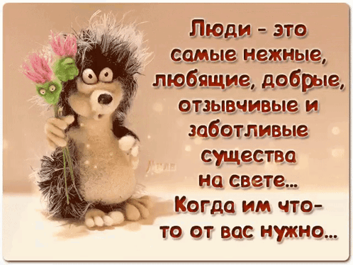 A cute hedgehog holding flowers next to a cynical Russian quote about people's true nature.