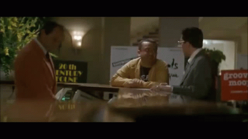 A scene from the French comedy 'La Cité de la Peur' where a character mentions 'pork gums' (Des gencives de porc).
