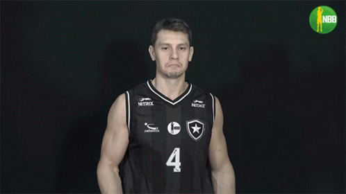 A Botafogo basketball player in a black jersey with number 4 claps, showing appreciation.