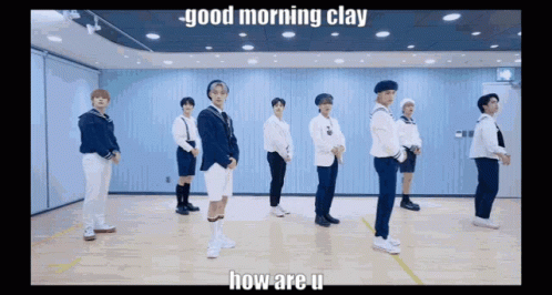 Stray Kids members greet 'Clay' with 'Good Morning' and 'How Are You' in their sailor outfits.
