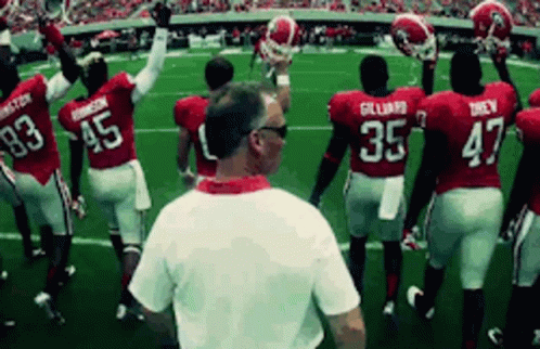 Clemson Tigers college football team on the field with their coach, celebrating or preparing for a game.