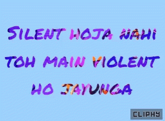 A Hindi quote 'Silent Hoja Nahi Toh Main Violent Ho Jayunga' displayed on a blue background by Cliphy.