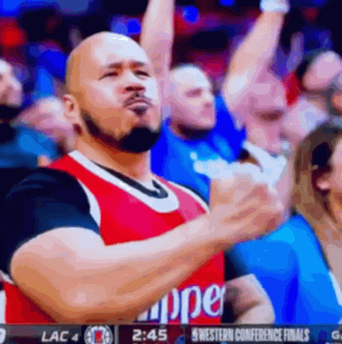 Joneil Del Rosario, the hyped Clippers fan, passionately reacts during the Western Conference Finals game.