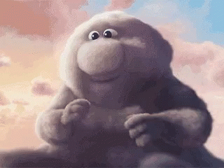 A fluffy, white cloud creature, referred to as a Cloud Crocodile, gestures in a cloudy sky.