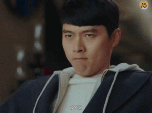 Hyun Bin as Ri Jeong Hyeok from Crash Landing On You with a sulky expression.