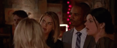 A group of people, including a man in a suit, react with surprise as the phrase 'clutch the pearls' appears.