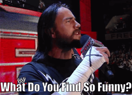 CM Punk, the WWE wrestler, confronts the audience asking 'What Do You Find So Funny?' during a promo.