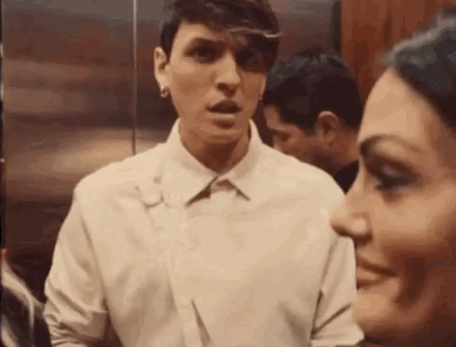 Erick Colon of CNCO shows an annoyed or skeptical expression in a close-up shot, conveying a 'meh' sentiment.
