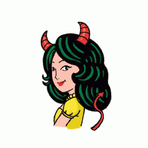 Co Mia Co Miaha, a cartoon woman with horns and a tail, displays an evil smile and gaze.