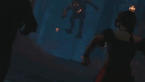 A terrifying werewolf monster with glowing red eyes lunges in a dark, eerie setting, reminiscent of Call of Duty Zombies.