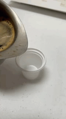 Rich, dark cafecito coffee is poured into a small cup, ready to be enjoyed.