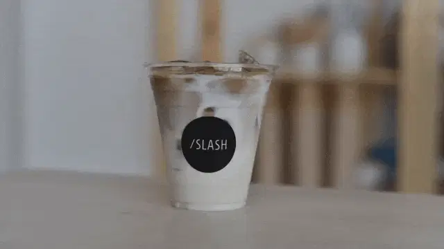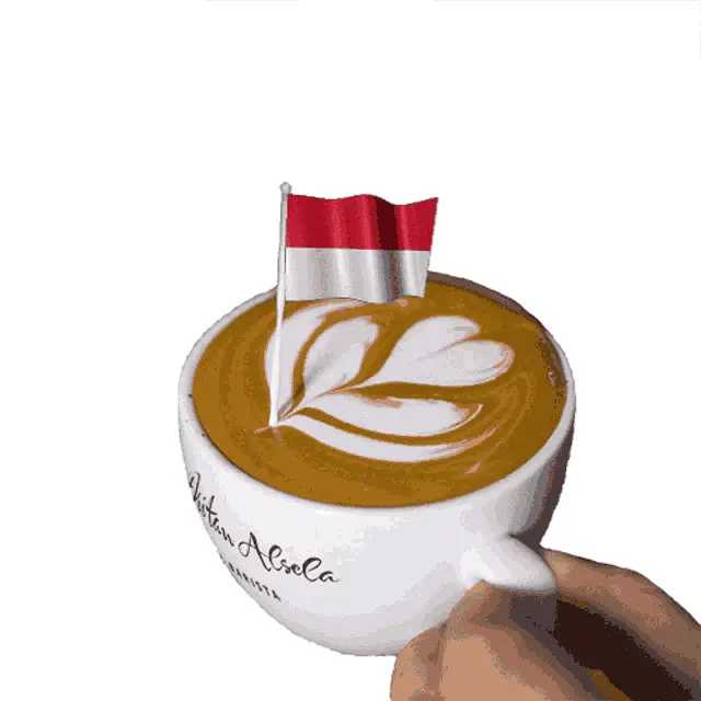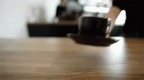 Enjoying coffee: a latte placed on a saucer, a mug on a placemat, and another mug next to a notebook.