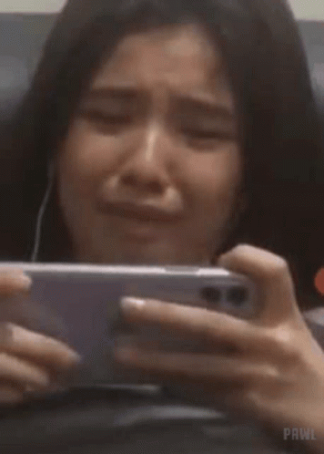 Coleen from MNL48 crying while holding a cell phone, appearing emotional and sad.