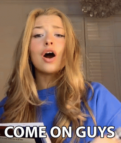 Louella, a young woman, enthusiastically encourages viewers with the phrase 'Come On Guys', possibly for a TikTok trend.