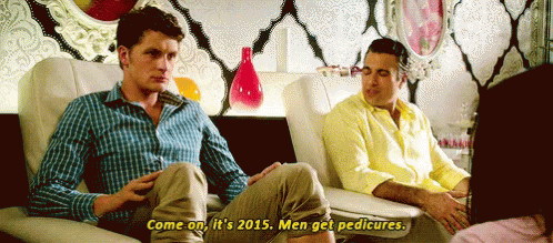 Rogelio De La Vega tells Michael Cordero Jr. that men get pedicures in 2015, from Jane the Virgin.
