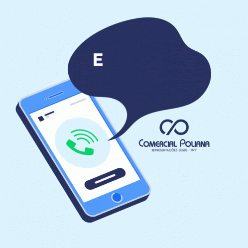 Animated phone with a speech bubble encouraging viewers to 'Entre Em Contato!' for Comercial Poliana.