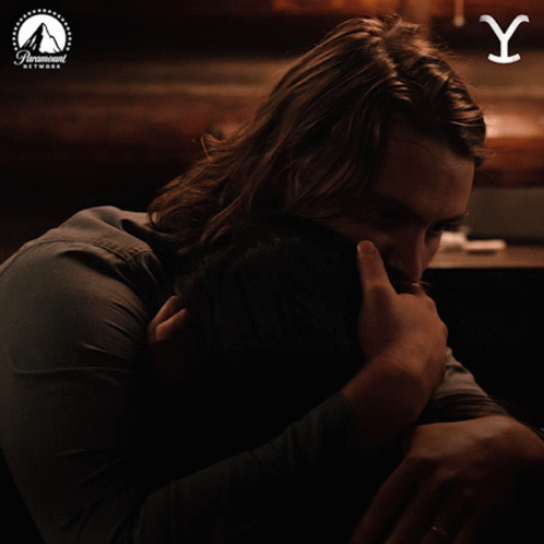Kayce Dutton, played by Luke Grimes, offers comfort with a heartfelt hug in a scene from Yellowstone.