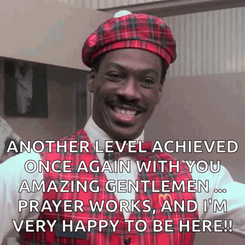 Eddie Murphy as Prince Akeem from Coming to America, smiling with a positive message.