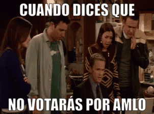 The cast of How I Met Your Mother reacts with surprise when someone says they won't vote for AMLO.