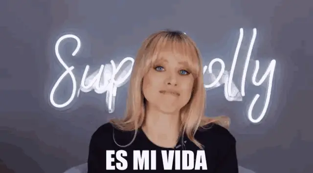 Superholly reacts with a surprised smile, asking '¿Cómo Dijo?' in front of a neon sign.