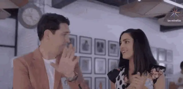 Giovanna Romo and Daniel García share a warm greeting, with Daniel asking "Cómo Estás?" in a friendly reunion.