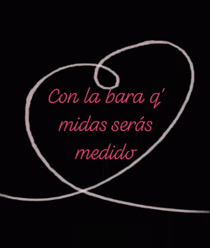 A white heart outline on a black background with the Spanish proverb 'Con la bara q' midas serás medido' (Biblical reference).