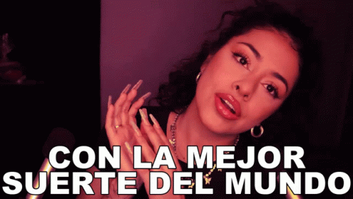 Merith Aranda looks at the camera with hands clasped, featuring the text "With the best luck in the world."