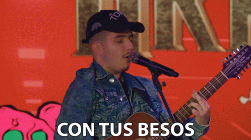Eslabón Armado performs 'Con Tus Besos Me Haces Sentir Bien' live on stage, featuring a singer with a guitar.