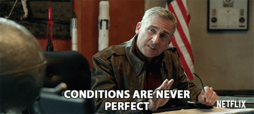 Steve Carell as General Mark R Naird states 'Conditions Are Never Perfect' in Space Force.