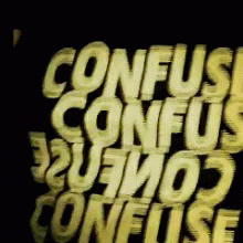 Yellow text spelling 'CONFUSE' repeatedly on a black background, creating a visually disorienting effect.