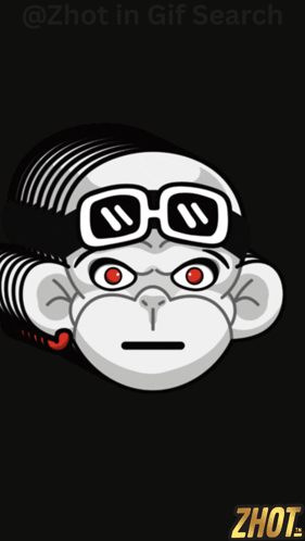 A confused monkey wearing sunglasses and a hat, with red eyes, looking blankly against a black background.