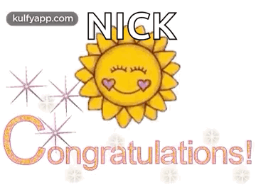 An animated congratulations card featuring a smiling sun and the text "NICK Congratulations!".