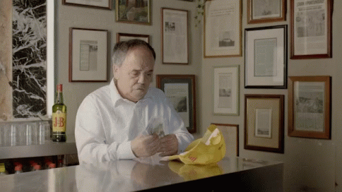 Cañita Brava, known from Torrente, counts money at a bar, with a bottle of JB whiskey in the background.