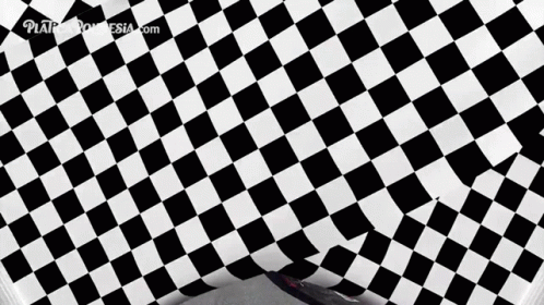 Karen Polinesia races a go-kart, feeling excited and happy on the track, passing checkered flags.
