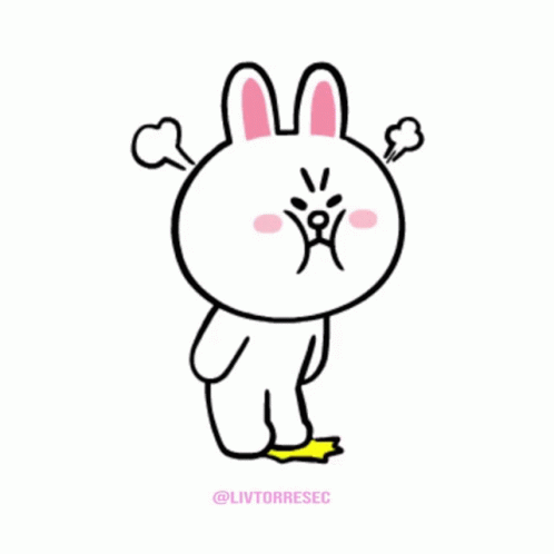 Cony, the white rabbit character, appears angry with steam coming from her head, stomping on a yellow object.