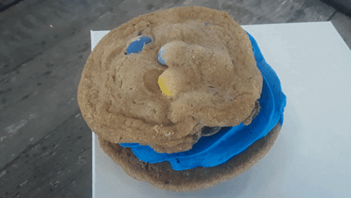 Delicious cookie sandwich featuring vibrant blue icing and colorful sprinkles, a sweet dessert treat.