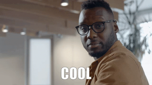 A man wearing glasses and a brown jacket looks at the camera as the word 'COOL' appears below him.