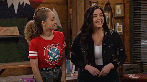 Ava King and Shelby Simmons from Bunk'd react with 'COOL, COOL' in a cabin setting.