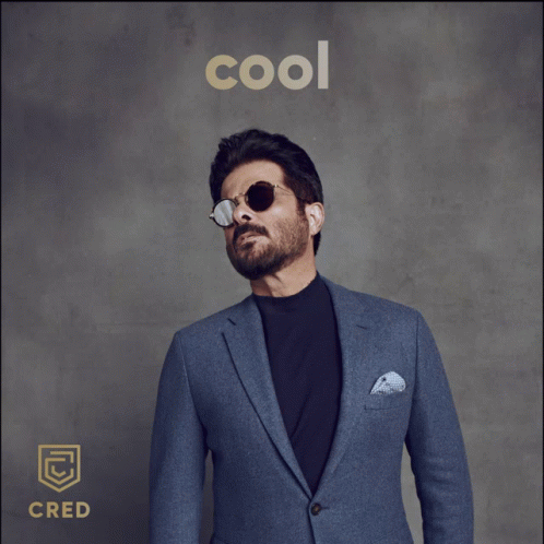 Anil Kapoor in a suit and sunglasses gives a thumbs up, with the word 'cool' displayed above him.