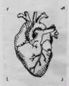 A black and white drawing of an anatomical human heart, associated with Cora.