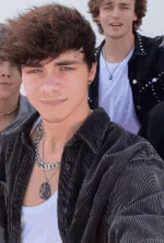 Corbyn Besson and other members of Why Don't We posing for a group selfie, smiling at the camera.