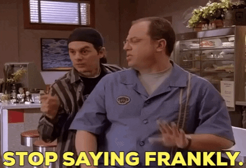 Brent Leroy from Corner Gas tells someone to stop saying 'frankly' in a humorous scene.