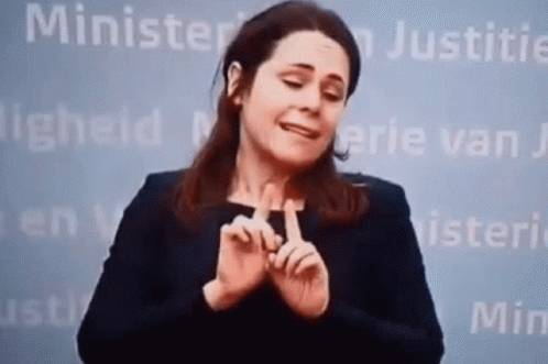 A woman uses sign language during a press conference about the Coronavirus Corona Crisis.