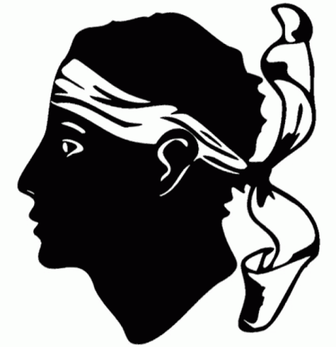 Black and white drawing of the Corsica flag's Maure Head symbol with a white headband.