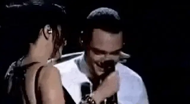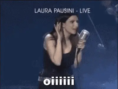 Paola Cortellesi in character, sitting at a table on the set of 'No Perditempo Forum'.