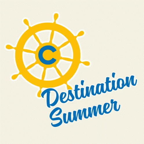 A vibrant logo for Costa Cruises' 'Destination Summer' campaign, featuring a yellow ship's wheel with a blue 'C'.