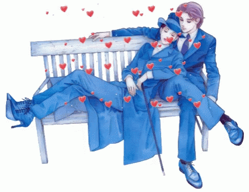 An illustrated couple, representing Saquinon, Horty, Bahonon, Adjoua, Ozoua, and Vickie, shares a loving moment on a bench with hearts.