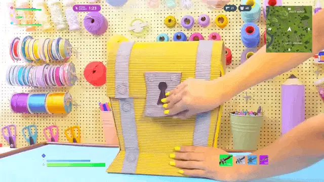 Craftingeek presents the power of imagination, with a woman gesturing enthusiastically in a colorful craft room.