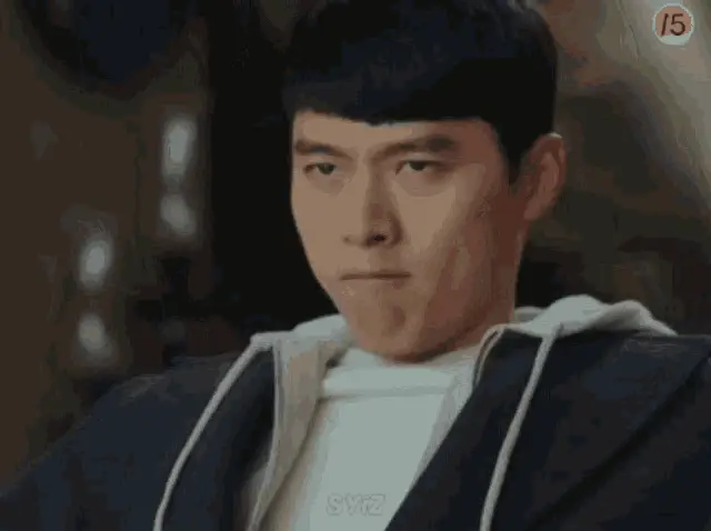Hyun Bin as Captain Ri Jeong Hyeok from Crash Landing On You, acting cute and biting his finger.