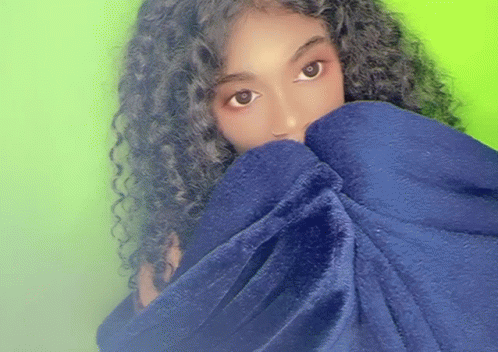 kawaiistacie (staysea) peeks from a blue blanket against a green screen, creating a creepy doll-like effect.